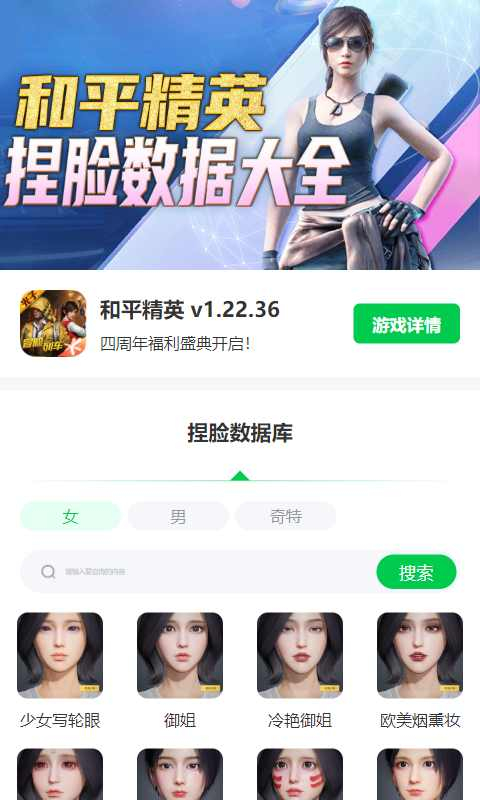 4.《和平精英》捏脸助手是一款极为经典的游戏辅助类手机应用,借助它能够在《和平精英》中搜索到大量捏脸代码。