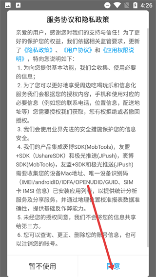 1、请仔细阅读《隐私政策》《用户协议》《应用权限说明》以及弹窗内的各项条款内容,点击“同意”按钮即表示您确认接受所有协议条款,届时可继续使用本应用提供的相关服务。