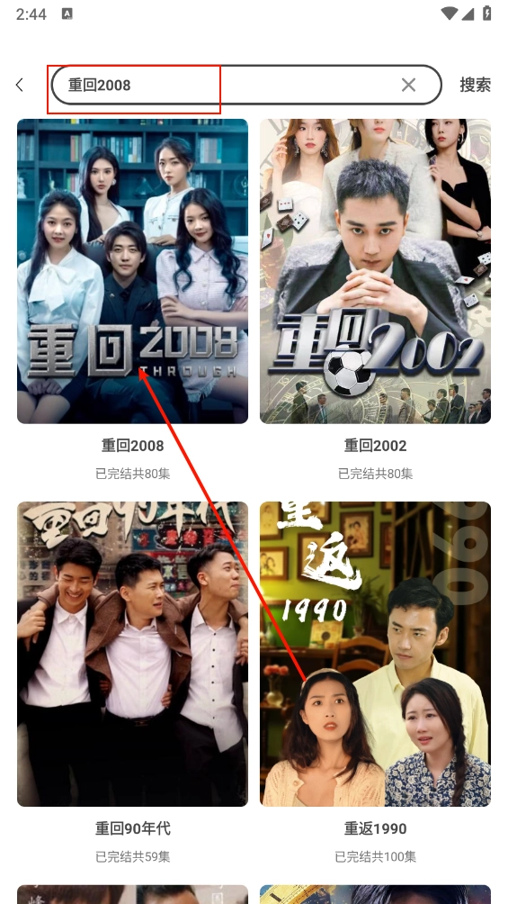 5、输入你喜欢的短剧资源名称,就能一键精准搜索到相关内容,像“重回2008”这类短剧,点击搜索结果后一键打开就能直接观看了。