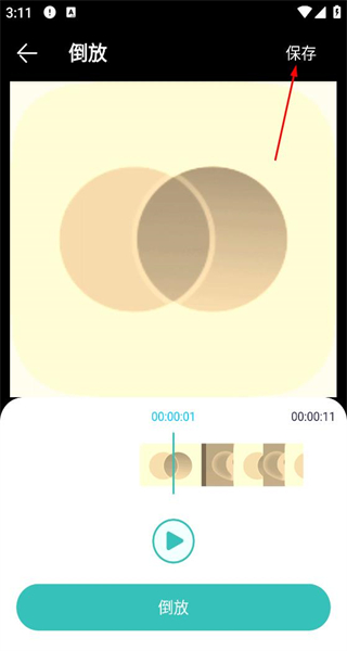 4、完成视频倒放后,确认效果符合需求,点击页面右上角保存按钮,存储处理后的视频。