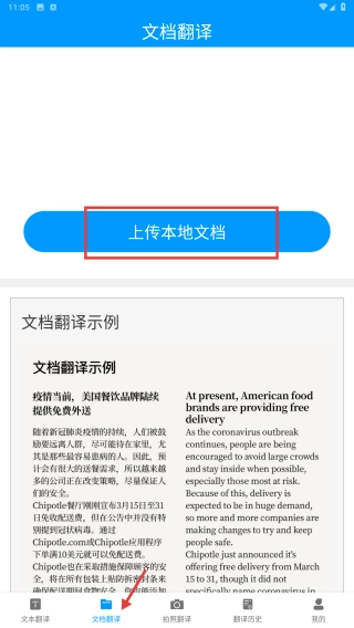 文档翻译的操作流程如下:首先进入“文档翻译”板块,接着点击上传按钮,从中选择PDF、PPT等格式的文件,然后确认好源语言和目标语言,提交文件后稍作等待,在一分钟内就能得到10万字以内的完整翻译文档。