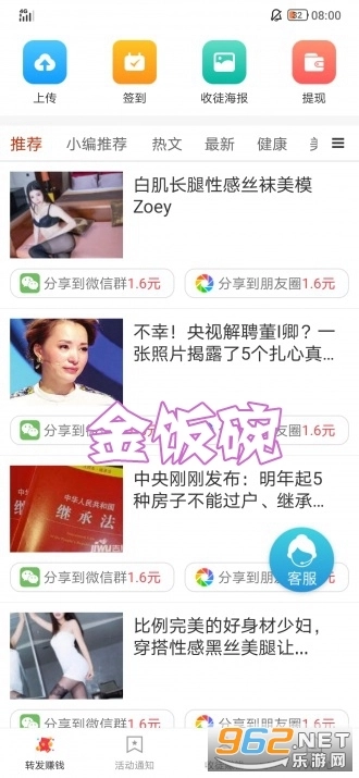 新用户注册即可领取32.1元奖励,文章转发的阅读单价永久保持2.1元/次,同时平台支持文章上传功能。