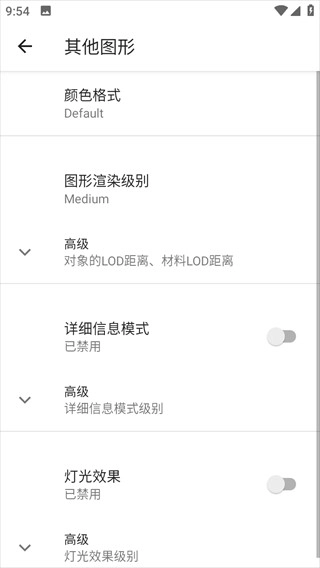 细节模式:使用不同的配置文件更改图形的细节。