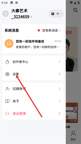 2、在个人页面找到【设置】选项,点击该选项可进入设置界面,页面还包含【创作者中心】-【切换账号】等功能入口。