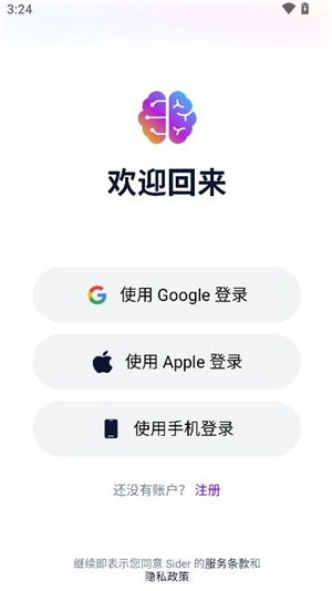 2、在这里你可以使用谷歌或者苹果账号快速注册