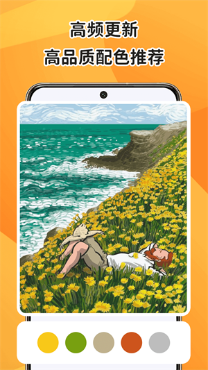 - 从绘画作品里发掘高频配色并加以运用,能轻松提取图片中的色彩,完成配色组合。