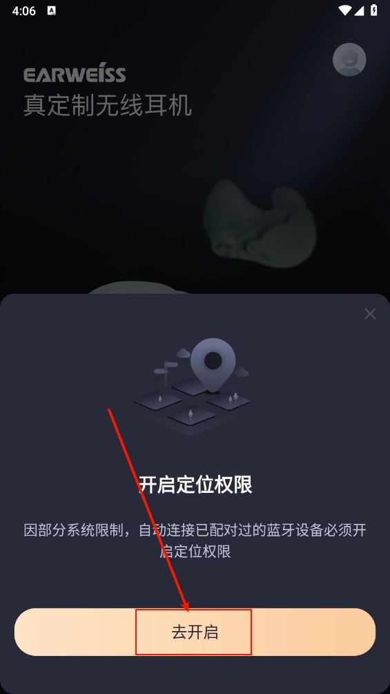 2、打开软件后,需点击“去开启”相关权限,这样才能实现自动连接配对。