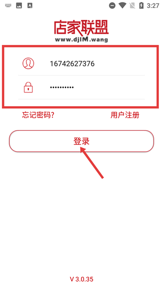 1、进入【店家联盟】登录页面,填写相应的账号与密码信息,若忘记密码可通过【忘记密码?】功能找回,确认信息无误后点击【登录】按钮即可完成登录操作。