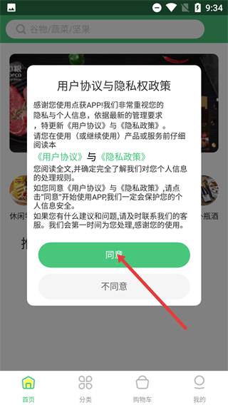 1、请先阅读【用户协议】和【隐私政策】,在了解清楚个人信息的处理规则后,点击【同意】按钮,即可进入点获的主界面开展后续操作。