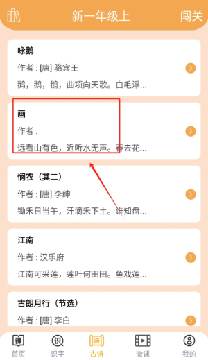 3、选择古诗学习这一选项,让孩子领略经典诗词的独特魅力,有效培养其文学素养与背诵能力。
