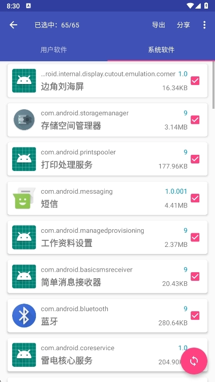 Apk导出神器这款软件占用的手机内存极小,用户可以直接分享各类不同文件,操作仅需一键;同时还能直接删除各种文件,且不会留下任何残留。