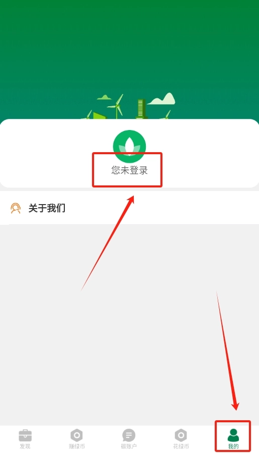 1、打开绿疆碳汇应用后,先点击右下角的“我的”页面,找到登录入口,准备进行注册或登录账号操作。
