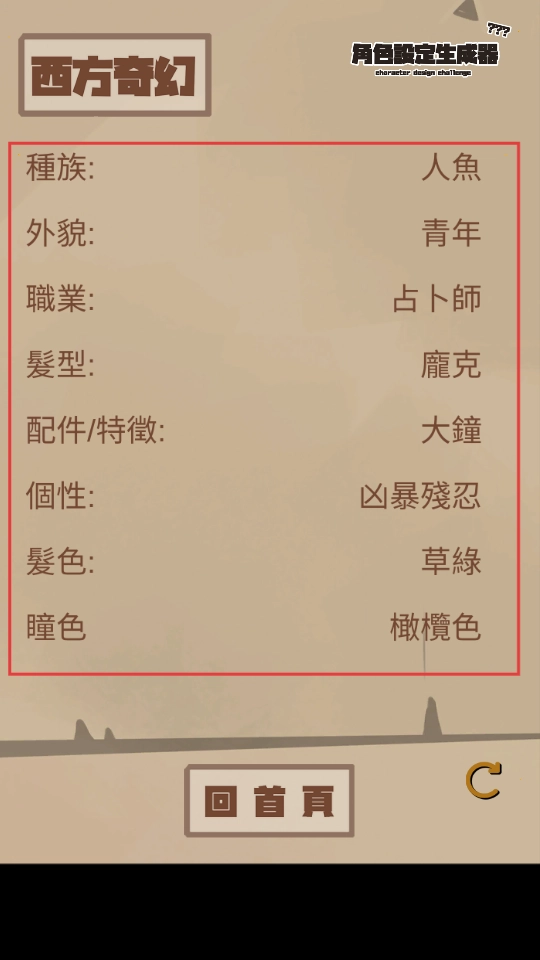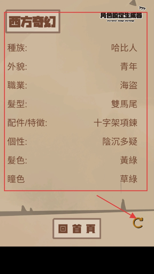 在西方奇幻角色设定页面,你可以查看种族、外貌等相关信息,点击右下角的刷新按钮就能重新生成内容。