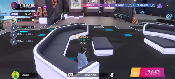 幻乐练习区大厅里的沙发,点击就能坐下;此外,青鸟演出中心的长板凳、饮料机,还有沙滩上的太阳椅,都支持互动操作。