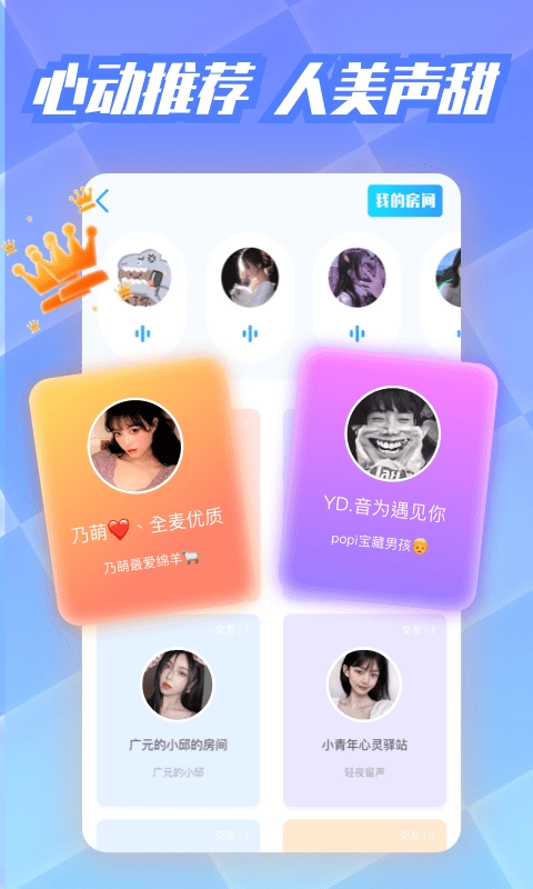 一对一交流:用户能够和自己挑选的声音陪伴者开展一对一的语音沟通,拥有独属于自身的陪伴体验。
