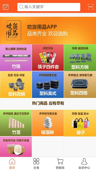 吃货用品是专注于一次性餐具采购的专业平台,平台汇聚了品类齐全的各类产品,用户可以随时随地进行选购。平台上涵盖了筷子、碗、竹签、塑料袋等多种产品,并且进行了详细的品类划分,用户能够随时通过选择不同大类来搜索并加购所需产品类型,产品价格也十分实惠。