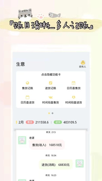 生意账本:记录你的财富积累过程,可将账本共享给收银员,并支持权限管理功能