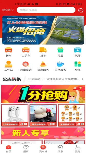 想要淘车、买车,或是给爱车做美容保养,就来亿城淘车平台!这里不仅有新车、二手车、货车等各类车型,还有丰富的汽车用品可供挑选;同时,紧急救援、汽车年检、维修等实用服务也一应俱全。用户只需用手机登录,就能不受时间地点限制,轻松完成购物、享受服务。也欢迎广大商家入驻亿城淘车,开启属于您的线上商业新空间!