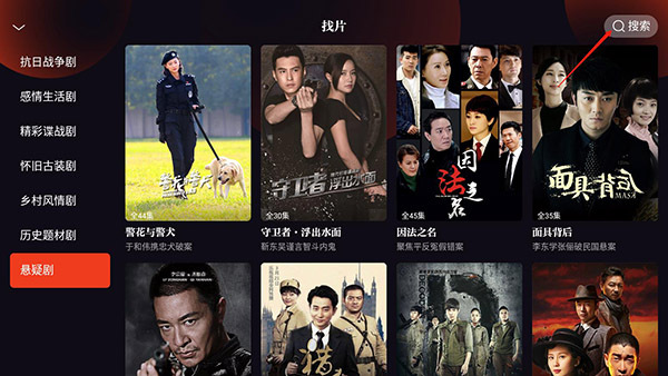 2、进入之后,大家能够看到包含抗日战争剧、感情生活剧、精彩谍战剧、怀旧古装剧、乡村风情剧、历史题材剧、悬疑剧等多种类型。
