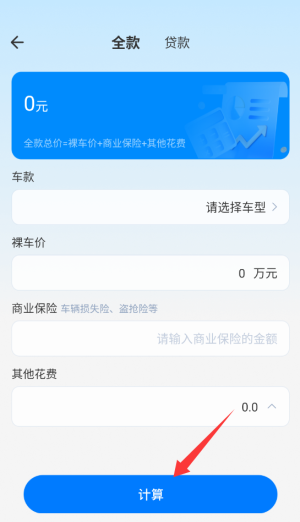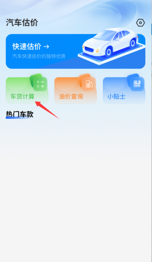 1. 打开二手车估价大全,于首页的工具栏中挑选“车贷计算”功能,随即进入计算器页面。