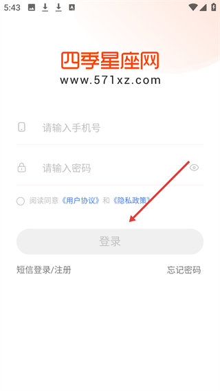 1、登录页支持账号密码登录需同意、用户协议隐私政策,还有短信登录注册、忘记密码功能,方便进入平台。