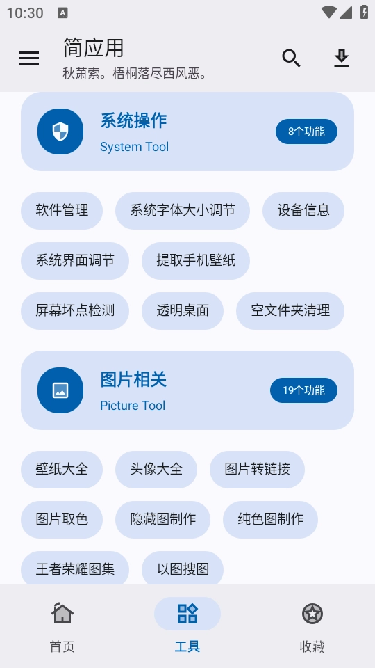 3、“工具”板块,详细的工具分类,包括生活日常、系统操作以及图片相关的工具。