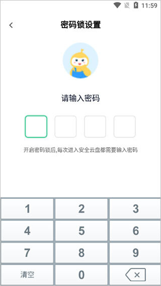 4、开启密码锁之后,每次进入360云盘均需凭借密码方可访问。