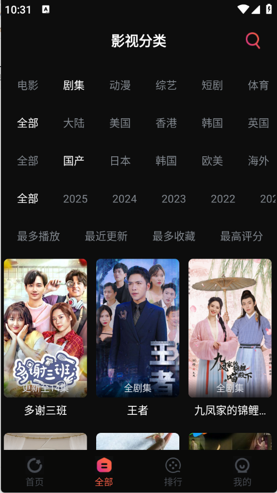 3、“全部”板块有电视剧、动漫以及综艺等类型。