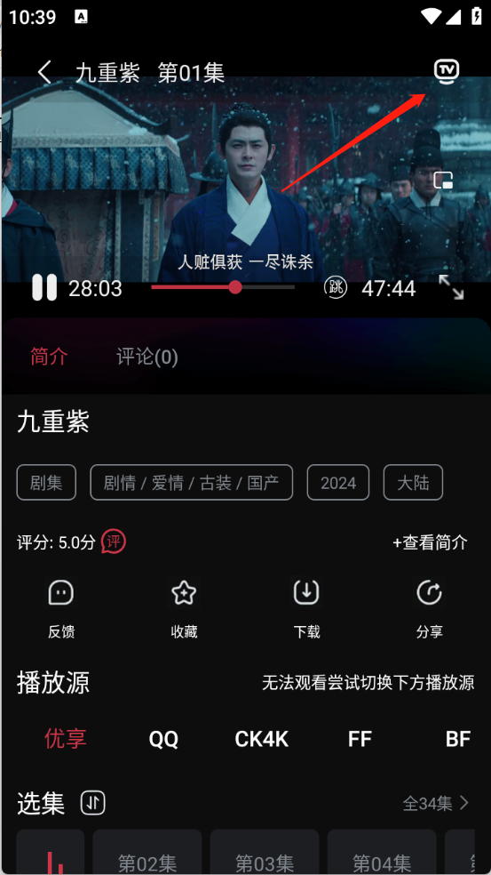 5、用户直接点击想要观看的影视内容,即可选择集数、播放源以及影视版本等。