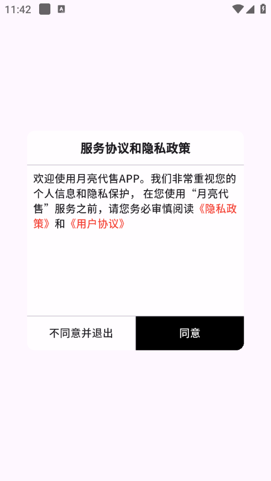 1、首先在本站完成月亮代售的安装,随后查看并同意隐私政策及用户协议。