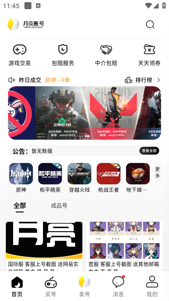 月亮代售是专为玩家打造的线上游戏账号交易平台,涵盖和平精英、蛋仔派对、王者荣耀等热门游戏账号交易。平台上的每一款账号都经过严格审核后才允许发布,玩家既能安心购买心仪账号,也能出售自有账号获取收益,无疑是一个值得信赖的交易平台。