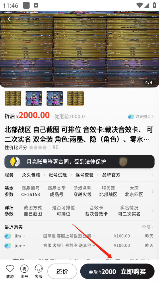 4、直接点击你想购买的账号进入详情页,要是觉得合适,就能点击“立即购买”按钮。