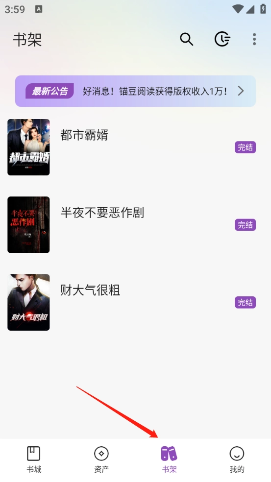 2、返回首页后,在“书架”页面能够查看已添加的内容。