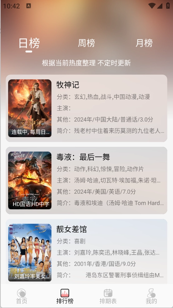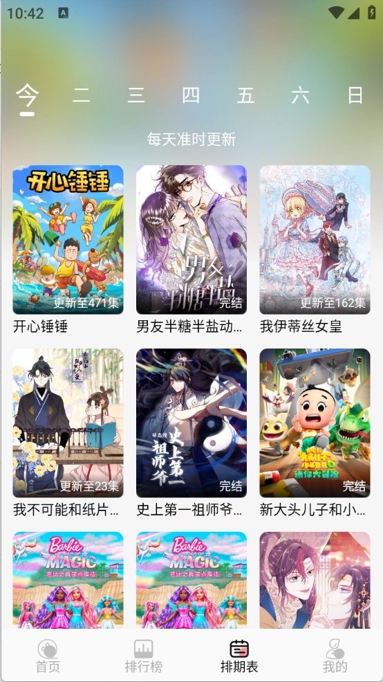 5、排期表是每天动漫更新情况,可以及时关注。