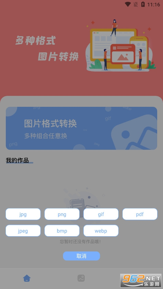 1. 在移动设备、PC端模拟器上,打开已安装好的JPG改图宝,进入其首页后,选择【图片格式转换】。