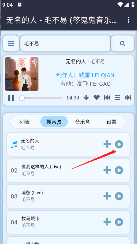 进入首页后,在搜索框输入歌手名字或歌曲名称并点击搜索。