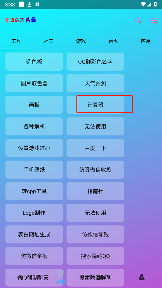 SG工具箱作为一个综合性的资源分享社区,涵盖小游戏、常用工具、音乐搜索与解析等多样内容,所有功能均支持免费使用。平台持续进行更新优化,无需复杂操作,打开就能直接上手;同时分类清晰明确,能充分满足用户在不同场景下的使用需求。此外,它占用空间小但功能丰富实用,为用户的生活、学习和工作提供了诸多便利。