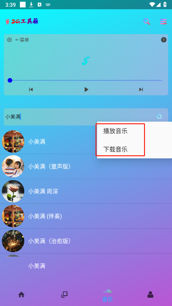 3、搜索之后,点击音乐,可以进行和在线播放。