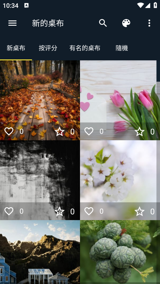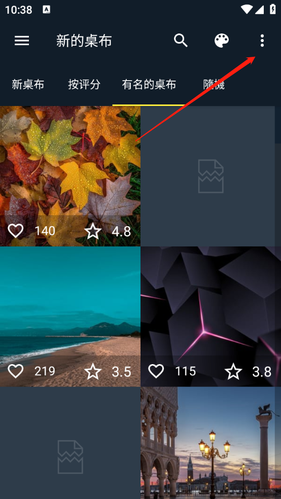 进入首页后,能看到丰富的壁纸资源库推荐,这些推荐是按照最新、评分和人气这几个维度来进行的。