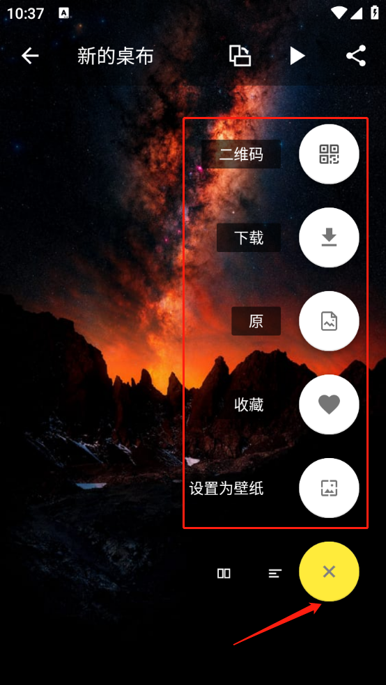 5、挑选心仪的壁纸进入详情页,点击“+”按钮,就能对该壁纸进行收藏、转发等操作。