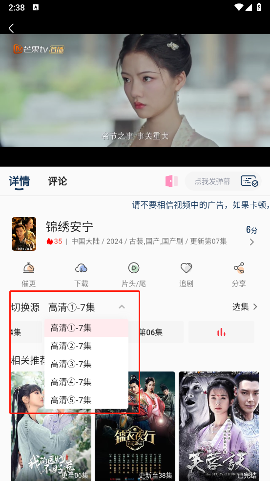 4、选择想看的剧集之后打开,选择想看的集数即可进入正片。