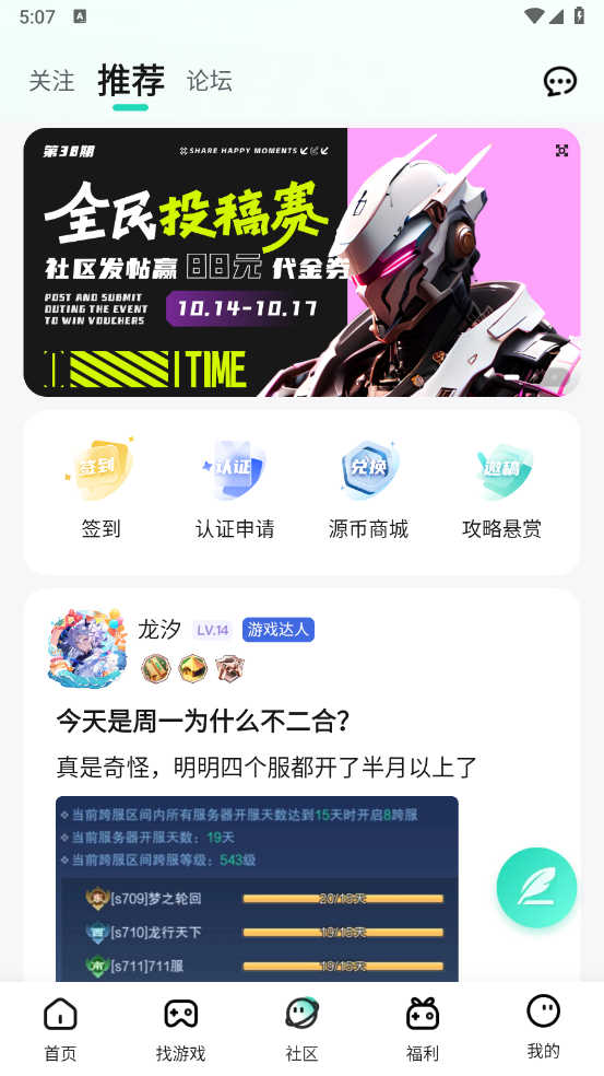6、在“社区”页面,你可以和其他游戏大神交流游戏心得,学习更多实用的游玩技巧。