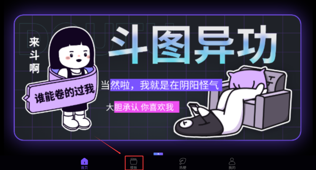 1. 开启斗神表情包制作后,轻点底部的“模板中心”选项,进入拥有海量表情模板的库中挑选素材。