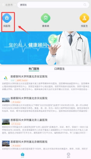 进入应用后,在首页找到“找医院”功能并点击,接着输入想要查找的医院名称或者具体区域。