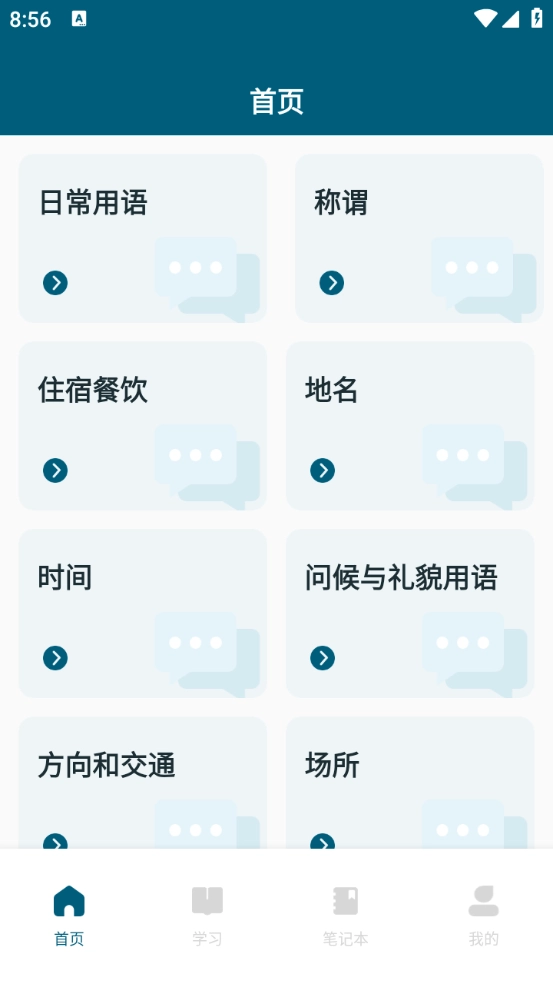 2、进入首页后,可以看到不少藏语相关的日常用语、称谓和地名等内容。