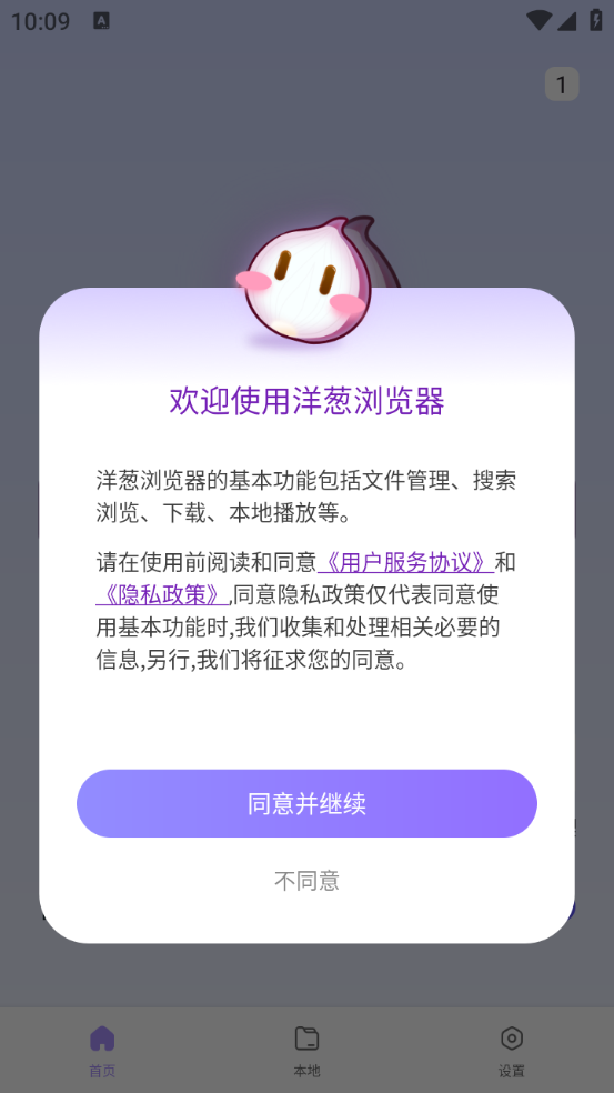 1、在本站好洋葱浏览器,同意相关政策与协议。