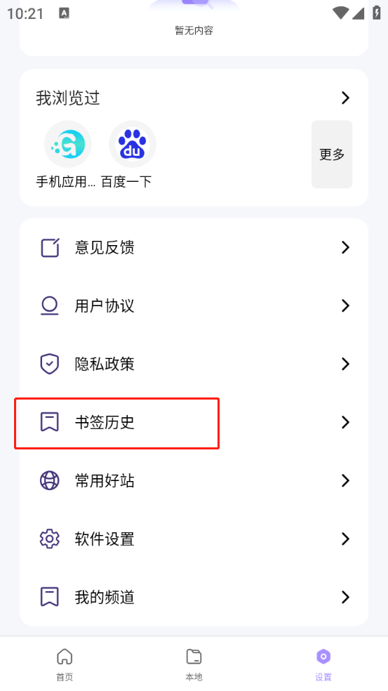 2、点击“书签历史”。