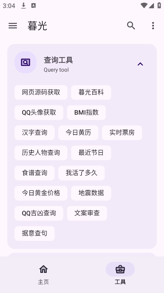 暮光工具箱是一款功能全面的手机工具箱,涵盖头像、壁纸以及各类资料查询服务。壁纸和头像支持直接设置或下载使用,所有工具均为免费,无需下载安装,点开即可轻松操作。我们还会持续更新资源库,让你随时随地都能享受工具带来的便捷体验。