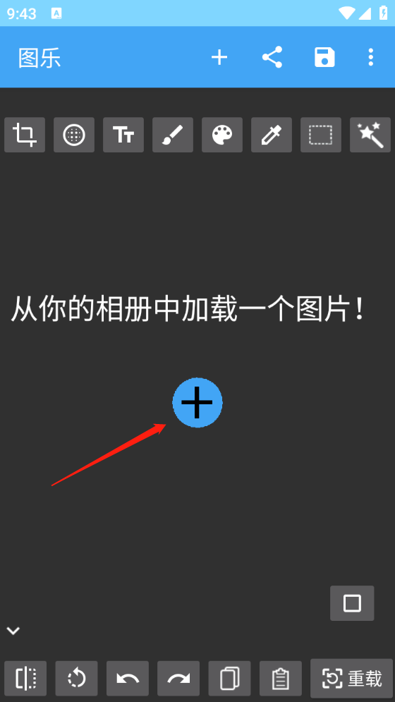 3、选择好之后,顶部和底部菜单栏有很多的修图工具可以使用,包括裁剪、对比度以及添加文字、磨皮等等工具。