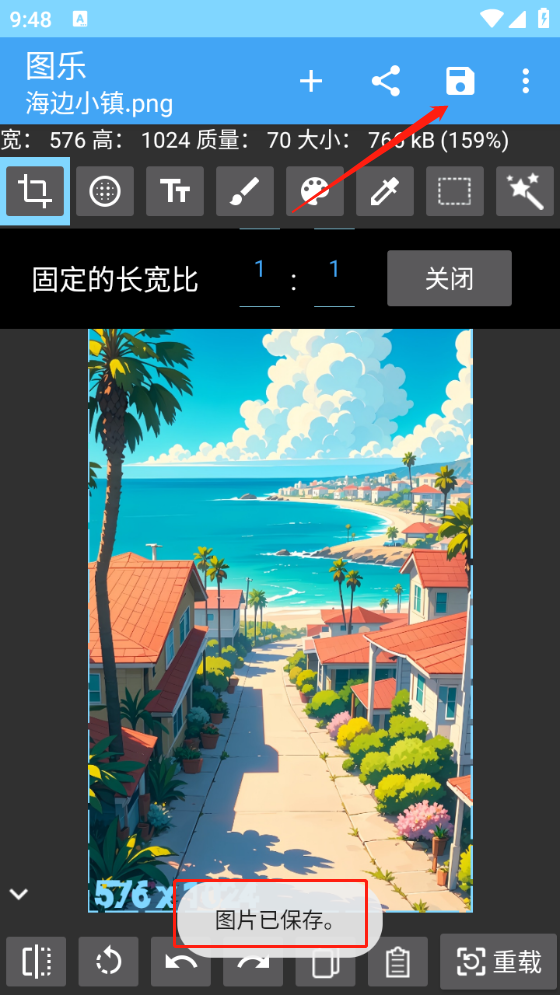4、比如小编想要裁剪图片,可以长按裁剪按钮来设置裁剪比例。